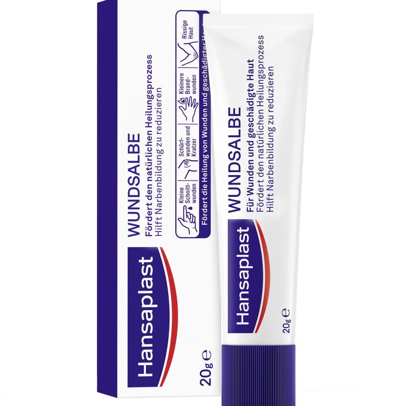 Um die natürliche Wundheilung zu unterstützen, traget bis zur vollständigen Heilung täglich Hansaplast Wundsalbe auf. Bei Bedarf kannst du die Wunde mit einem Hansaplast Pflaster, einem sterilen Verband oder eine Kompresse abdecken. Die Salbe bildet einen atmungsaktiven Schutzfilm auf der Wunde und sorgt für feuchte Wundheilungsbedingungen. Hansaplast Wundsalbe fördert so nachweislich die natürliche Wundheilung und reduziert das Risiko von Narbenbildung.