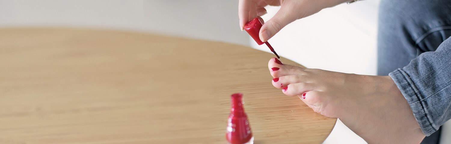 Neben dem Entfernen der Hornhaut ist auch die Nagelpflege an den Füßen sehr wichtig. Daher verdient auch die Pflege der Nägel beim Selbermachen deiner Pediküre Aufmerksamkeit. Lange Nägel können Strümpfe oder Socken beschädigen und sogar das Gehen sehr unangenehm machen. Achte beim Nagelschneiden darauf, dass du nicht zu viel abschneidest, da Nägel sonst einwachsen können. Knipse oder feile also nur wenig von den Seiten ab. Die Form der Nägel sollte ihrer natürlichen Rundung entsprechen. Feile dann die Ränder glatt. Wenn die Zehennägel eine unregelmäßige Oberfläche haben, kannst du eine spezielle Feile für die Glättung verwenden. Wenn du die Nagelhaut entfernen möchtest, schiebe sie sanft zurück – aber verwende keine Schere!