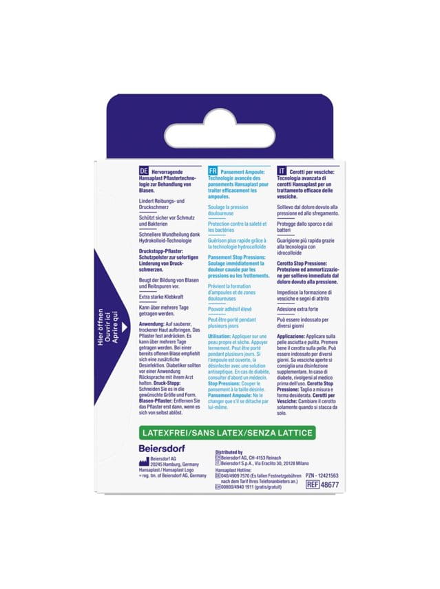 Das Hansaplast Blasen-Pflaster mit der Hydrokolloid-Technologie schafft optimale Bedingungen für die Wundheilung, da es die Umgebung feucht hält und die Wundheilung beschleunigt. Um den Heilungsprozess nicht zu stören, und solange keine Anzeichen einer Infektion auftreten, sollte das Pflaster mehrere Tage getragen werden, bis es sich von selbst ablöst.