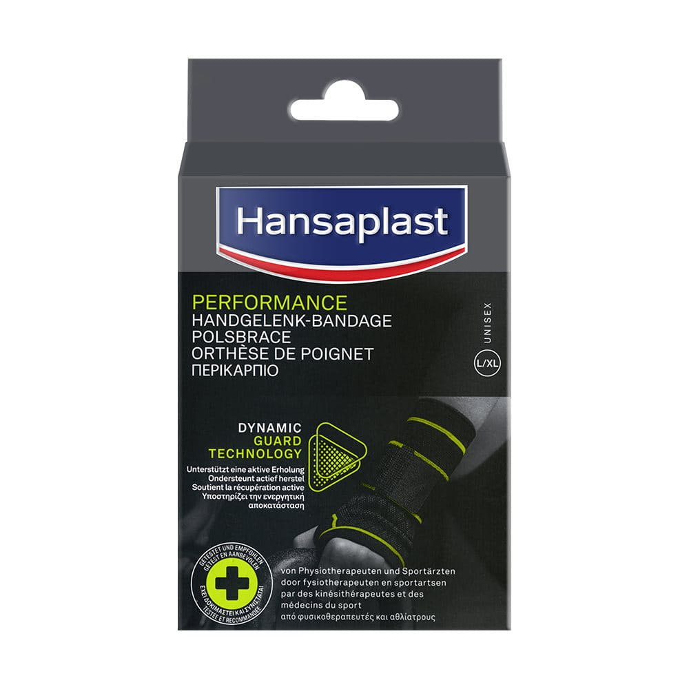 Die Hansaplast Performance Handgelenk-Bandage bietet Stabilität, Schutz und Kompression für schmerzende, schwache, oder verletzte Handgelenke. Sie bietet einen moderaten Stützgrad während der Bewegung und anderen Aktivitäten.