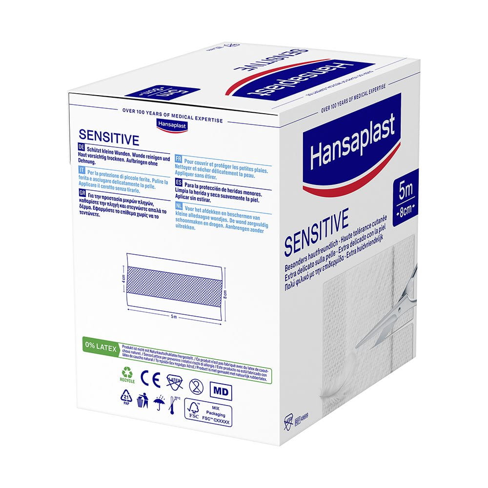 Hansaplast Sensitive Pflaster sind für empfindliche Haut und eignen sich für alle Arten von kleineren Wunden und Verletzungen. Das besonders hautfreundliche Material ist hypoallergen und flexibel. Hansaplast Sensitive Pflaster sind auch für Diabetiker geeignet, die Hautverträglichkeit ist dermatologisch bestätigt.