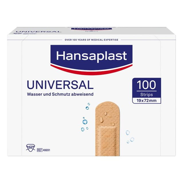 Hansaplast Universal besteht aus wasser- und schmutzabweisendem, aber gleichzeitig hautfreundlichem, atmungsaktivem Material und ist zur Versorgung kleiner Verletzungen geeignet, besonders wenn Verletzungen Schmutz und Feuchtigkeit ausgesetzt sind.