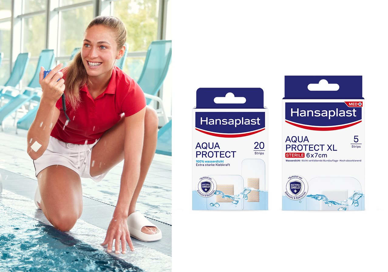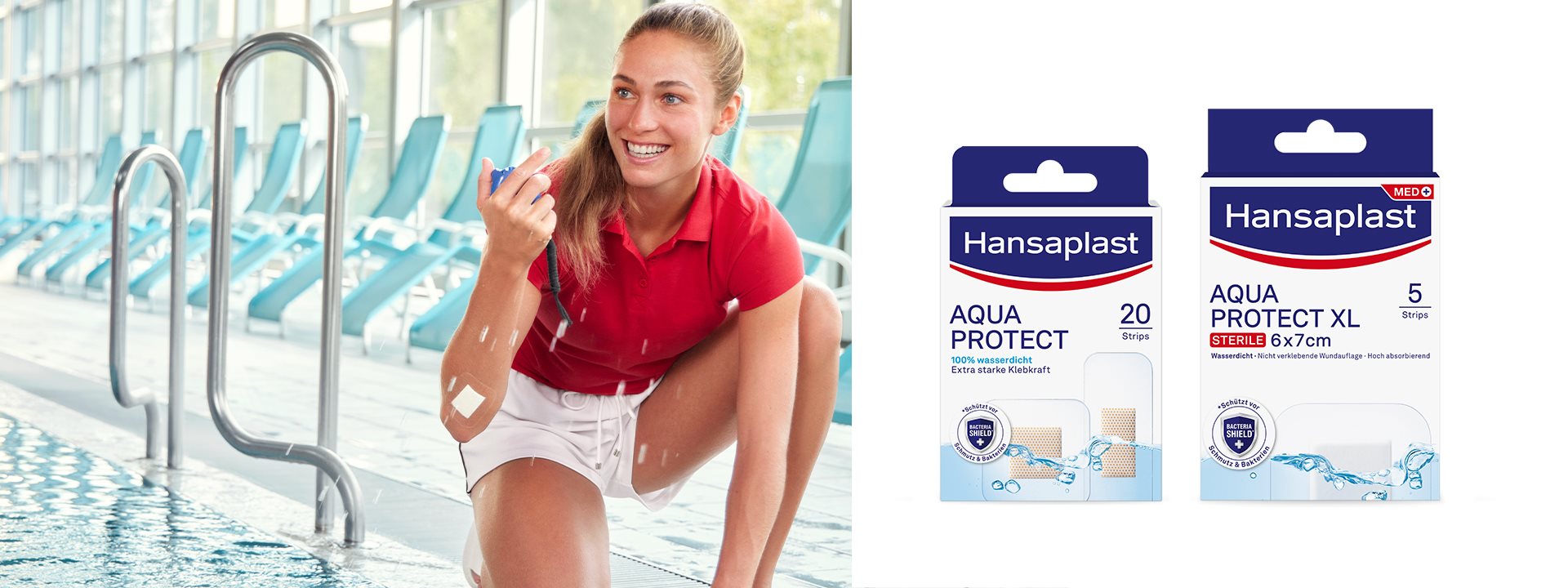Das Hansaplast Aqua Protect Pflaster bietet 100% wasserdichten Schutz. Für optimale Diskretion kombiniert es eine hautfarbene Wundauflage mit einem durchsichtigen Trägermaterial. Dank der extra starken Klebkraft bleibt die Wunde bis zu 8 Stunden nach Anbringen des Pflasters geschützt – selbst dann, wenn es mit Wasser in Berührung kommt.