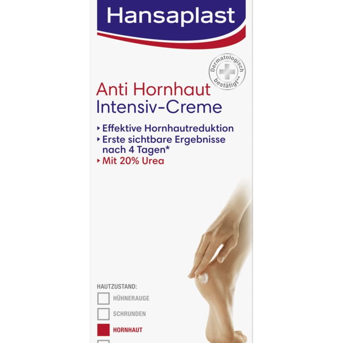 Hornhaut tritt am häufigsten an den Fußsohlen auf, aber auch Handflächen und Finger können betroffen sein. Hornhaut äußert sich immer als gelbliche Verdickung der Haut. In den meisten Fällen ist sie nicht schmerzhaft. Bei übermäßigem und ständigem Druck kann es aber zu Beschwerden und der Bildung von Rissen kommen (siehe auch: Soforthilfe bei gerissenen Fersen).